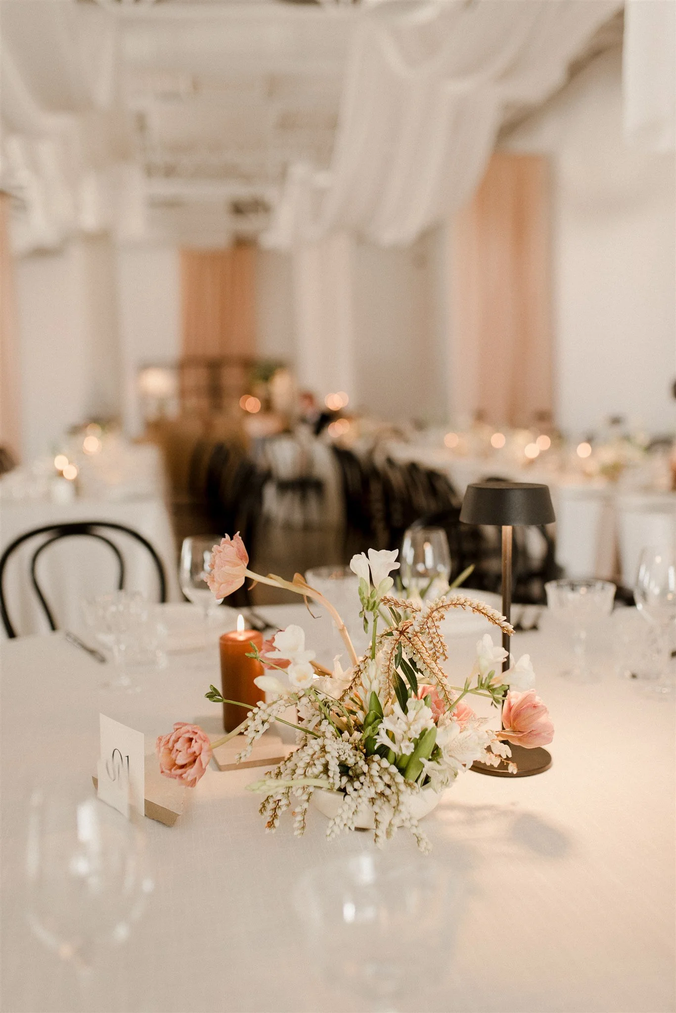 How Much Do Wedding Flowers Cost? Warm Neutral Wedding Reception at Novella