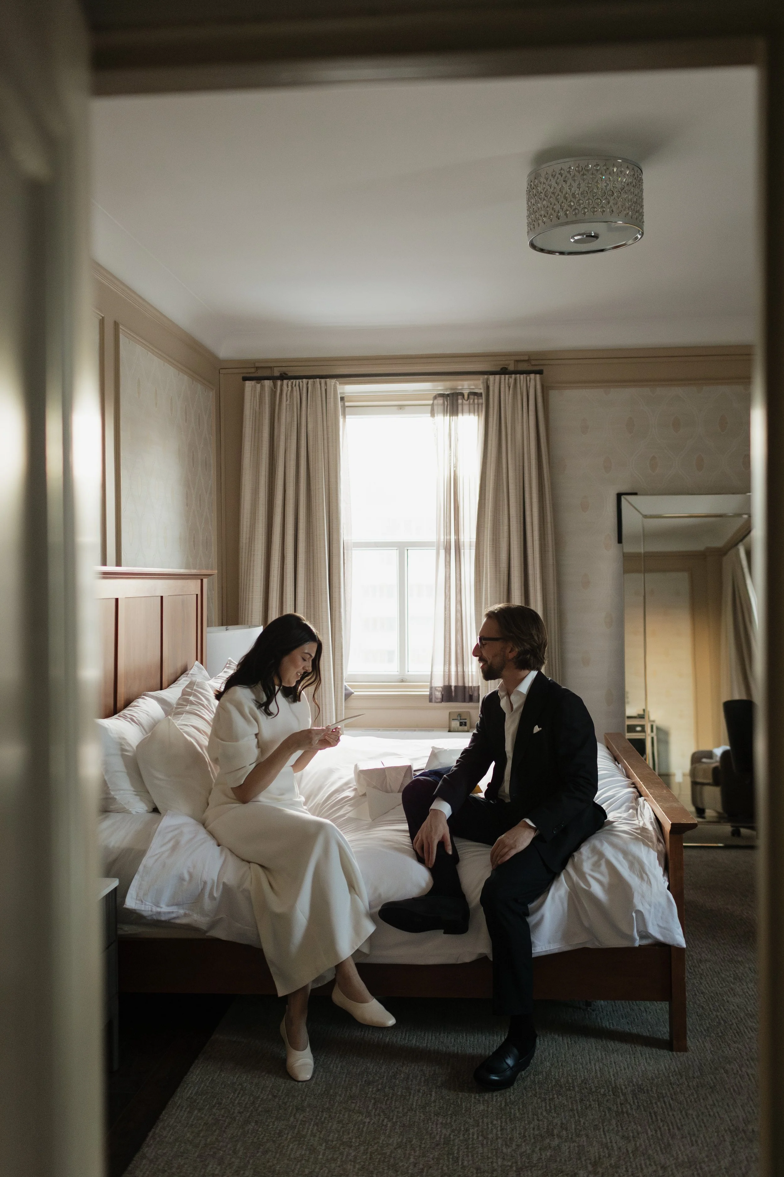 Her bridal style was so chic, so simple! The couple spent the morning together, getting dressed together and giving each other gifts and letters. While I personally loved our first look on our wedding day (my husband BAWLED, it was adorable), I really love this idea. It feels so peaceful, so relaxing, and since the rest of the day goes so quickly, it’s wonderful to have so much one-on-one time together to start your most special day.