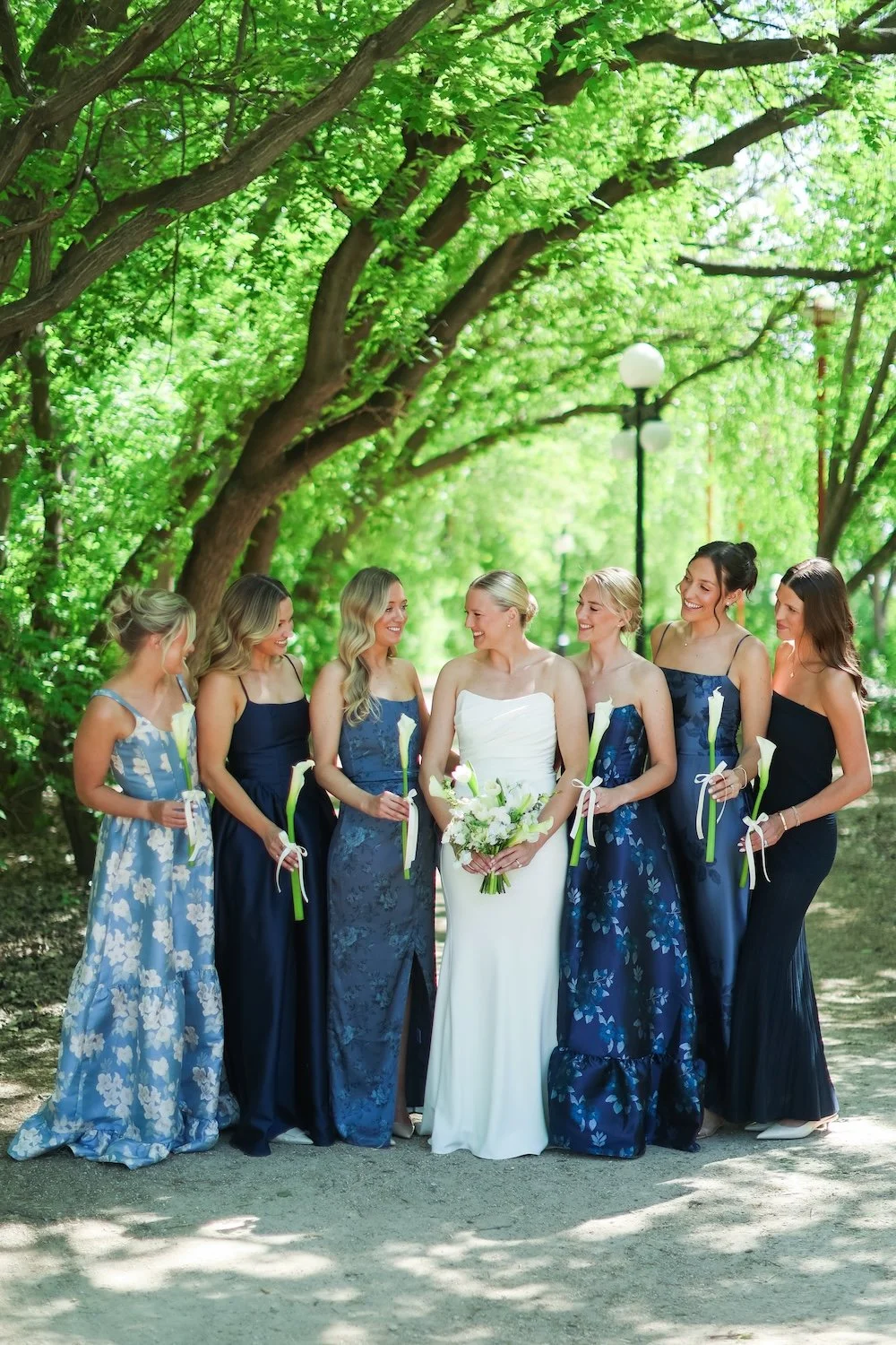 The bridesmaids carried single stems of large calla lilies, which I tied with a delicate bow. I didn’t originally plan to use a bow, but I did need something on those stems. At first, I tried just a simple wrap of ribbon and it looked like a hilarious bandaid wrapped around the handle, while the bow looked charming. Done!