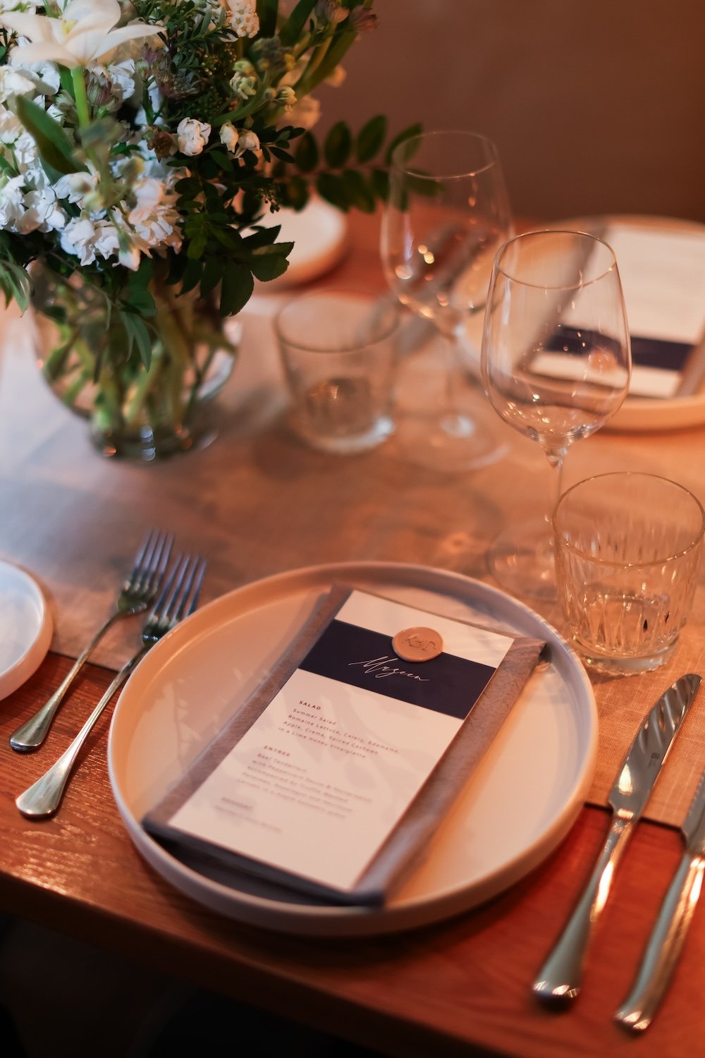 Soiree knows just how to bring in a slight touch of colour to elevate a design! Delicate touches of this perfect dusty blue paper in the table numbers and menu cards was perfect.