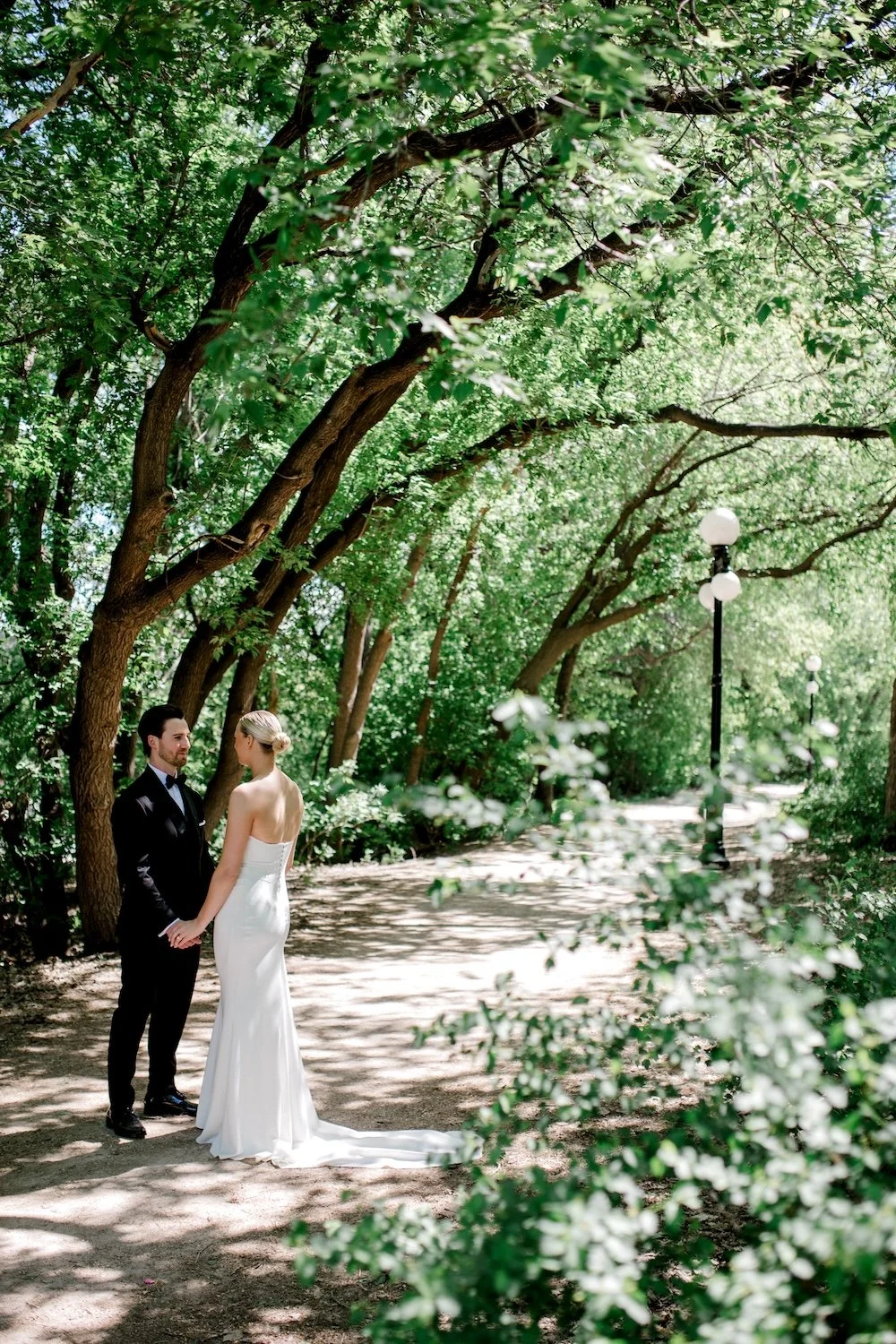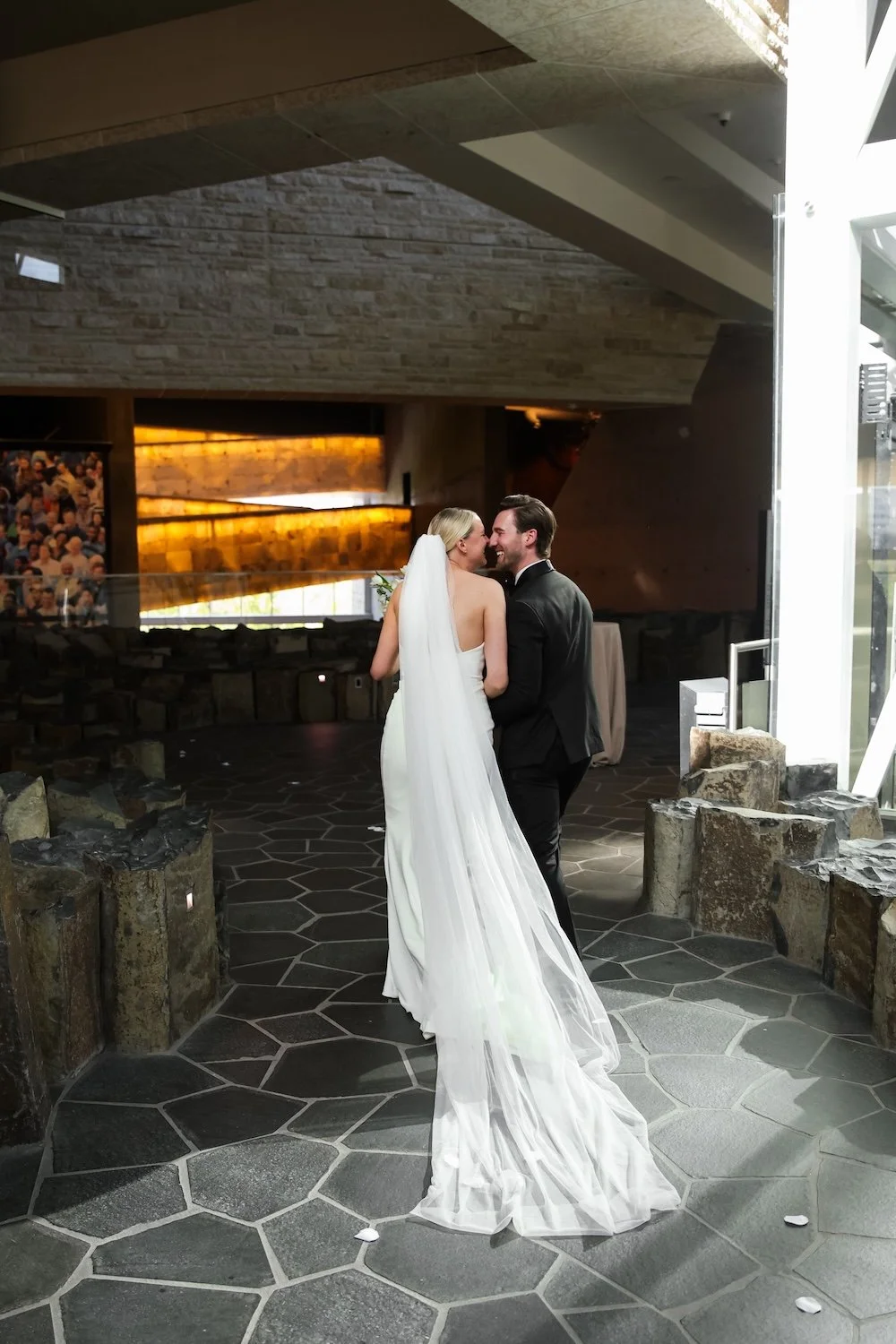 The ceremony took place at the Canadian Museum for Human Rights. It’s a really striking space, with soaring ceilings and tons of windows. Since the ceremony and reception were going to be in 2 different venues, we wanted to choose a ceremony design that would be easy to repurpose over to Smith without too much difficulty, and to choose something that would ground the eye. With ceilings that high, it can be tricky to figure out the right scale to design for.