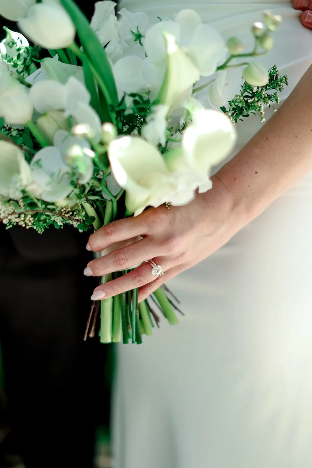 Kate had a vision for a slightly smaller bouquet, with a bit more of a vertical shape. Her inspiration image was made of faux flowers, which can be tricky for a florist to then figure out how to execute in fresh flowers. There’s the simple but substantial difference of fresh flowers having their own movement, where each stem is going to do what it wants, while faux flowers are super easy to manipulate due to having a wired stem. All that being said, I LOVED the way Kate’s bouquet turned out!! It was delicate, petite, SO lightweight, and filled with a small selection of absolutely stunning blooms.