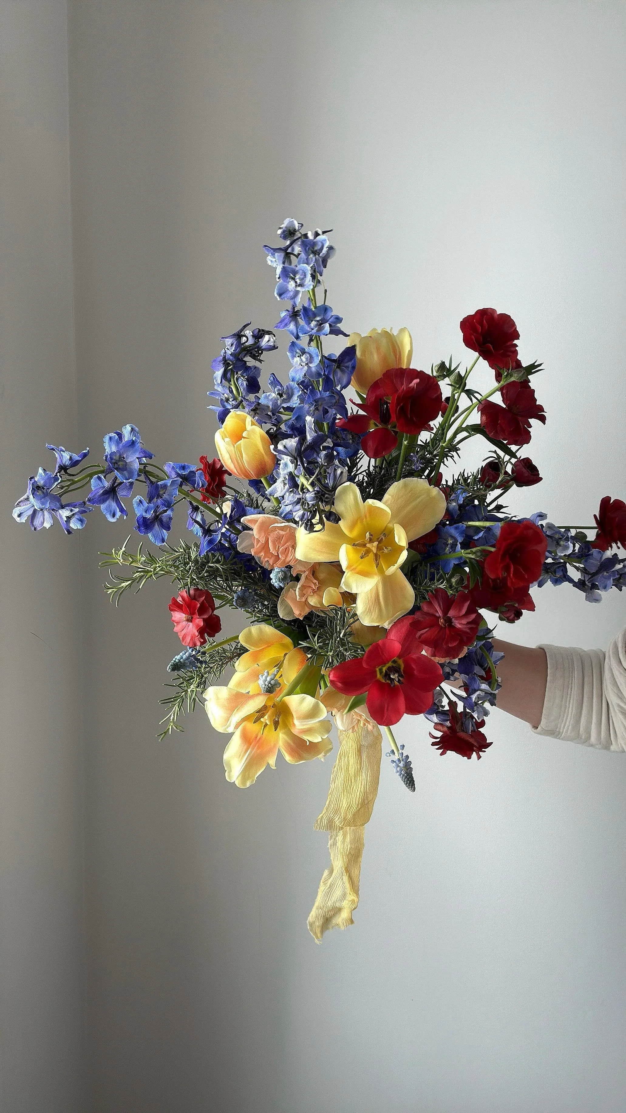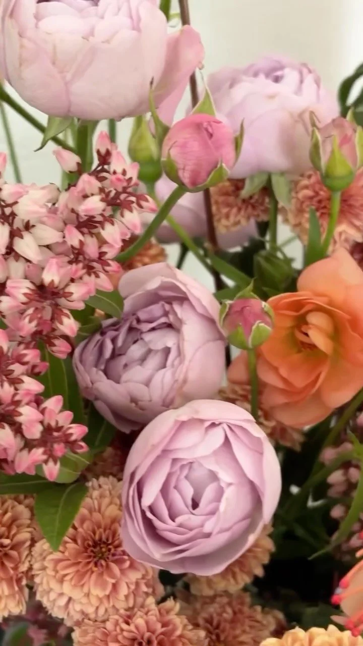 I really loved putting together Madison's bouquet. It had a lovely shape to it while still feeling manicured and contained. Bridal bouquet ingredients: O'Hara garden roses, tibet roses, ranunculus, lisianthus, eucalytpus, Italian ruscus, cedar, and variegated Italian pittosporum.