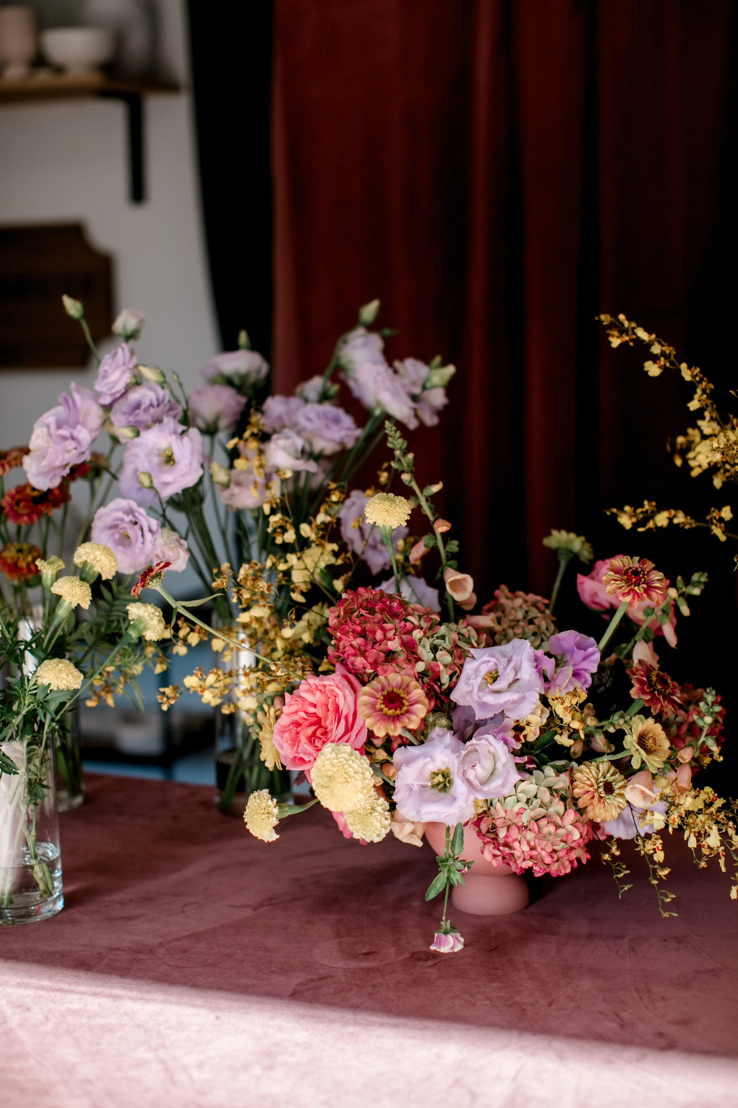 One of the best ways to ensure that you’ll love your pastel palette is to use locally grown flowers. Locally grown flowers are the BEST for blending a delicious palette (but, of course, you’re limited on the season). We’ll often see multiple tones within a single local bloom, which is what gives us the ability to blend that palette and create something with depth for you.