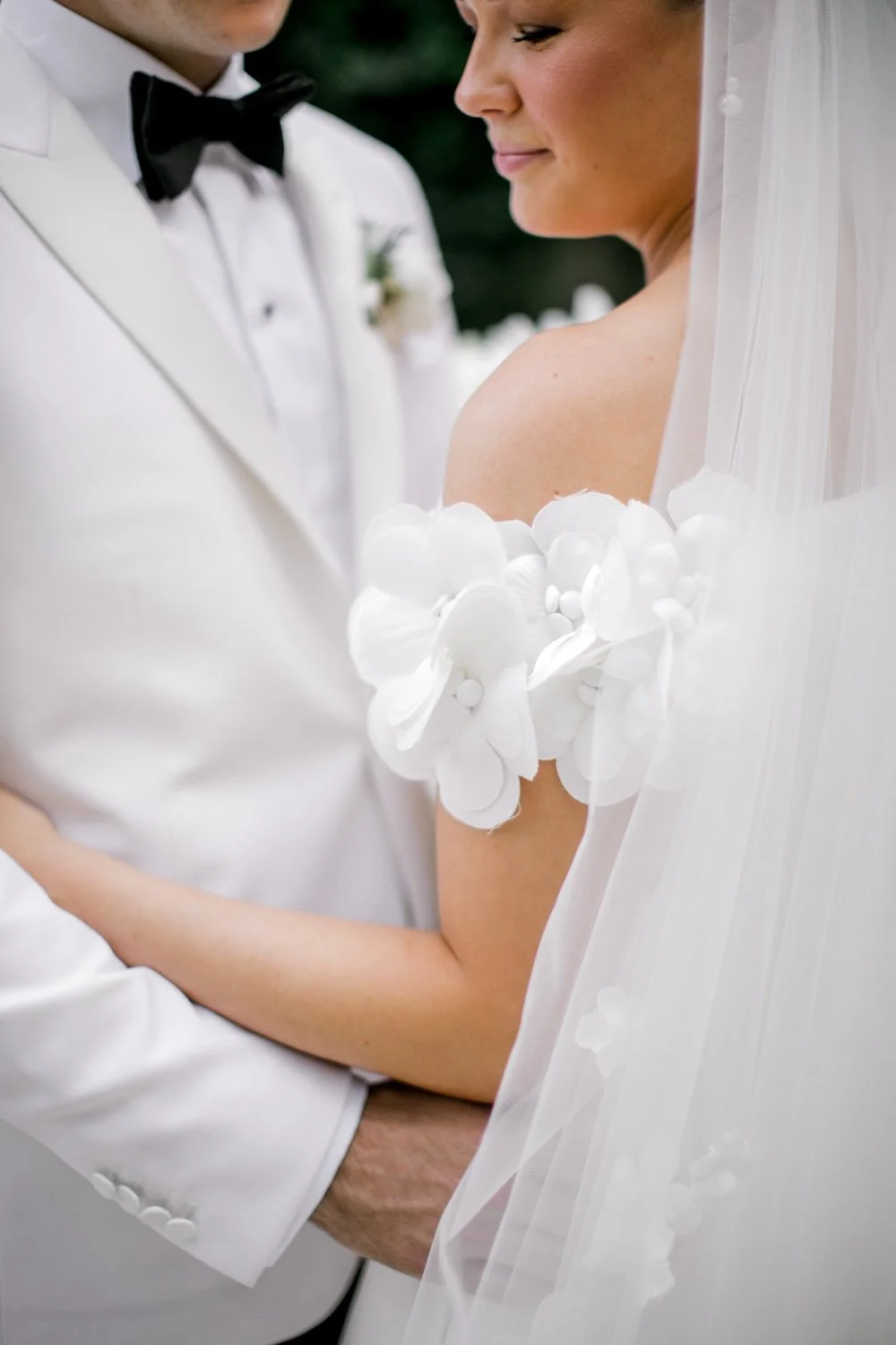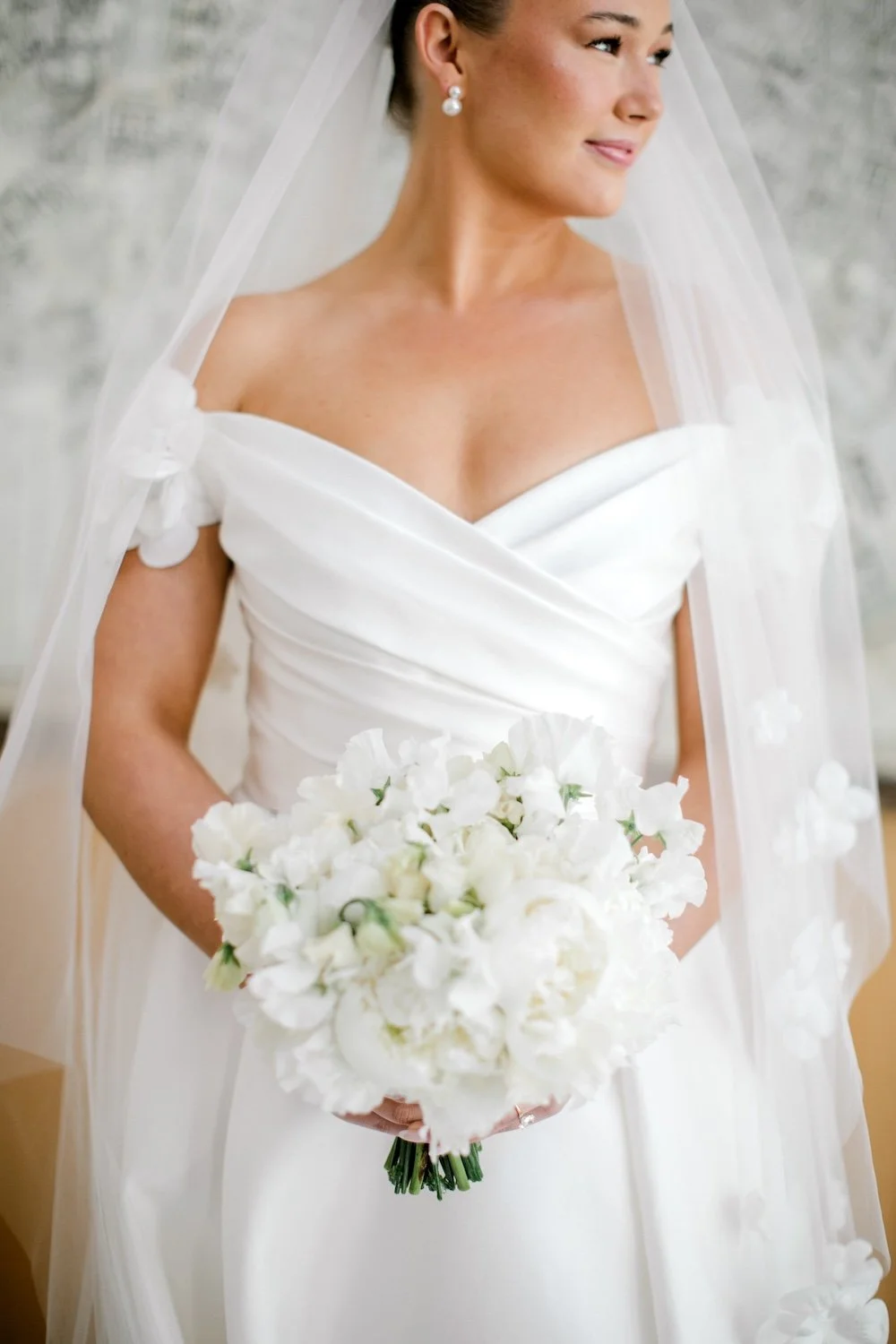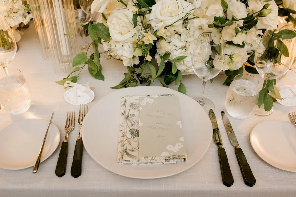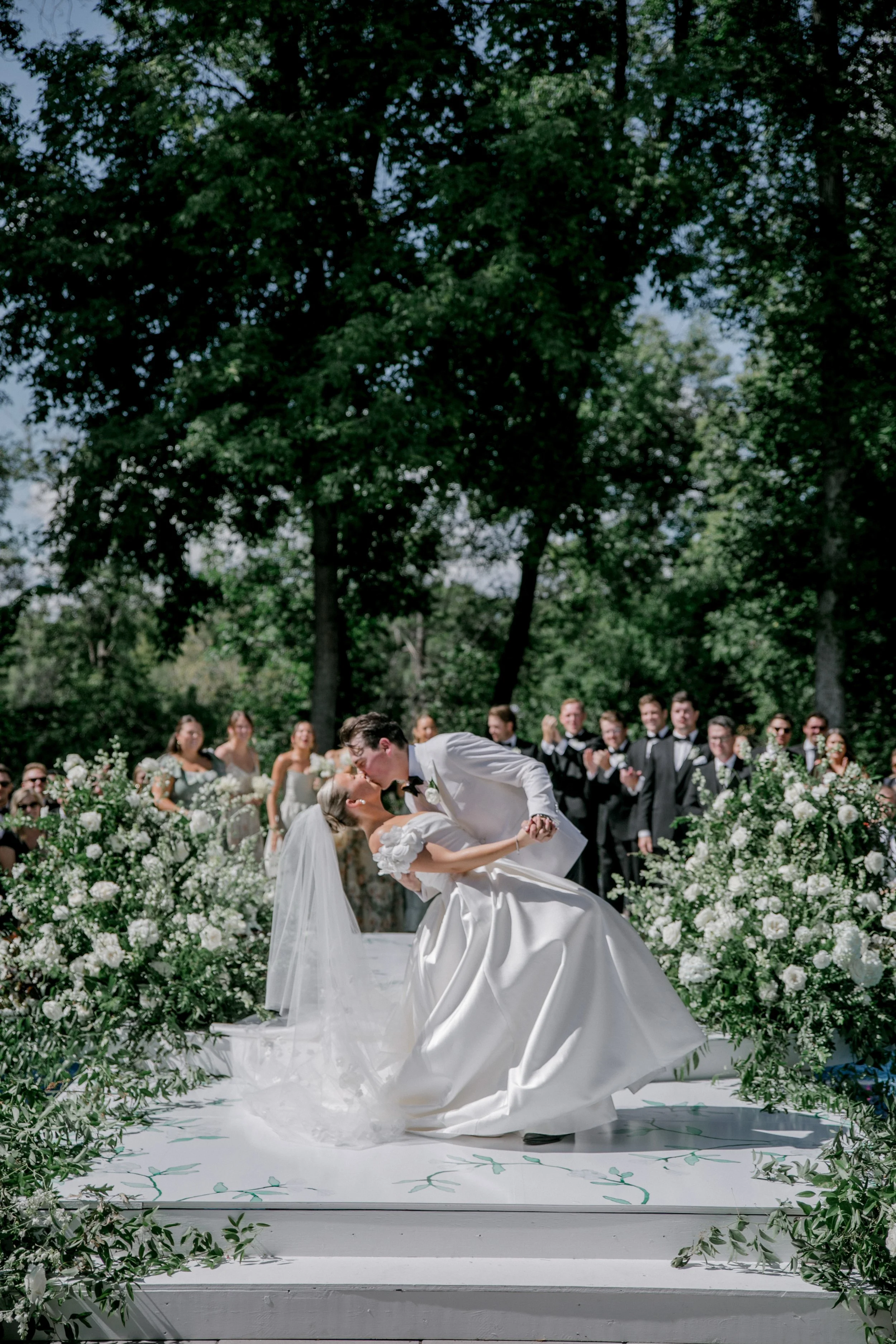 Together with their planner, Soiree Event Planning, we created a stunning ceremony, featuring an aisle filled with candlelight, leading to a modern altar set with varied gold plinths and luxurious floral accents.